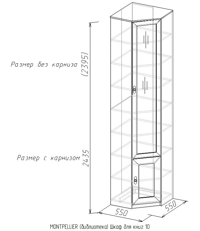 В наши дни наличие кабинета или обустроенного места для работы в современной квартире становится необходимостью, поэтому специалисты Глазовской мебельной фабрики дополнили полюбившуюся многим покупателям коллекцию MONTPELLIER библиотекой. Благодаря модульности коллекции, библиотеку MONTPELLIER можно расположить в Вашем домашнем кабинете или гостиной, выбрав для компоновки именно то, что Вам нужно. Модульная библиотека MONTPELLIER, благодаря светлому декору Дуб Млечный, производит впечатление легкости, надежности и поддерживает позитивный рабочий настрой, при этом комната не кажется перегруженной мебелью. Высокие шкафы надежно крепятся к стене, а тонированные стекла защищают книги от прямых солнечных лучей, пожелтения страниц и пыли. Фасады шкафов по Вашему желанию можно навесить как на правую, так и на левую сторону. Рамочные фасады с филенкой, канелюры, карнизы придают композиции законченный вид.