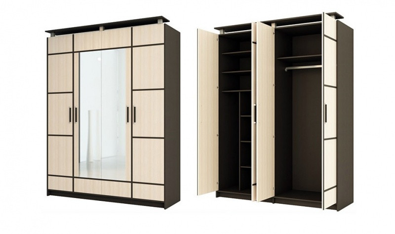 Особенности шкафа: Шкаф разделен на 2 части. В левой части отделение полки для белья. Правая часть шкафа имеет верхнюю антресоль и штангу для одежды. Зеркала наклеены на фасад Этот модуль стильное и вместительное хранилище для одежды, которое наполнил гармонией, уютом и комфортом вашу спальню или другую часть жилища на ваше усмотрение.