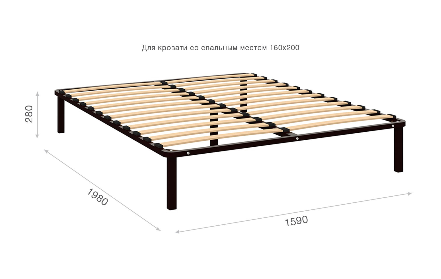 • Основание: Березовые ламели из 7-слойной фанеры на металлическом каркасе и 5 опорах