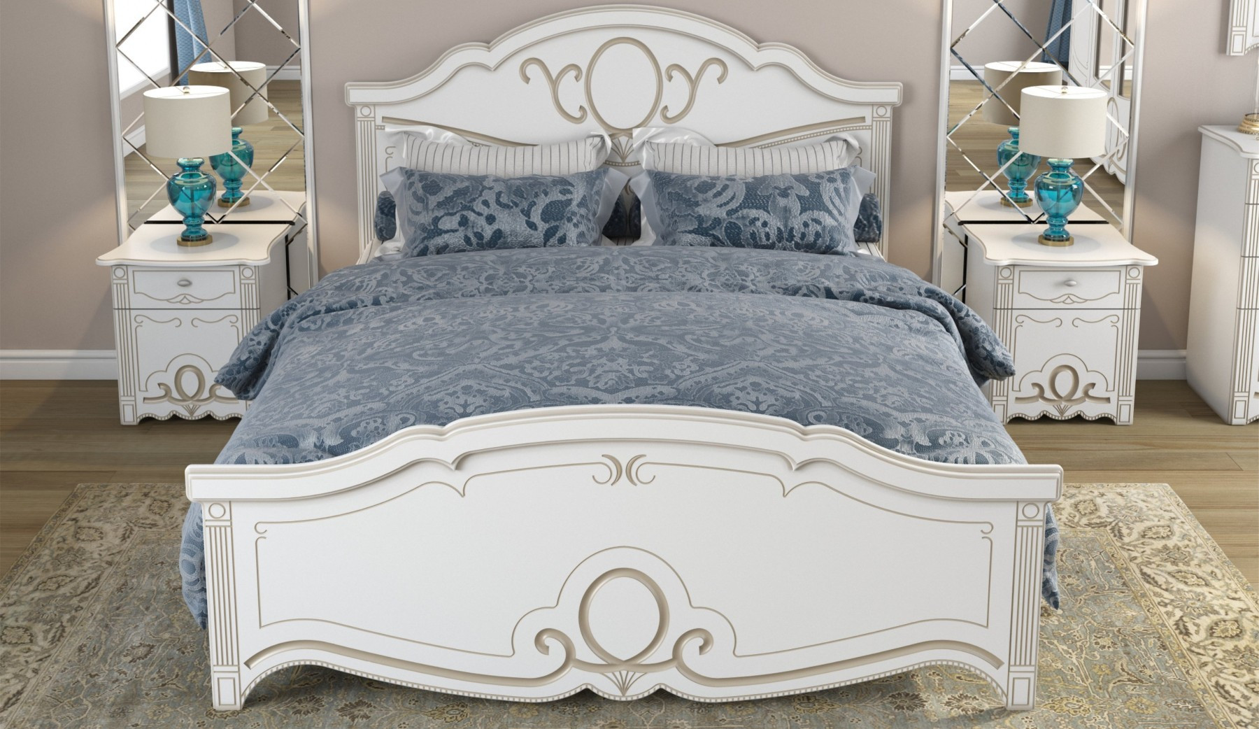 —Спальный Гарнитур Барбара Белый/Патина Золото